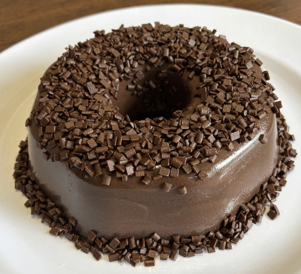 Para os amantes de chocolate intenso, pudim ideal e cremoso, feito com leite condensado moça, cacau 50% e finalizado com granulé.